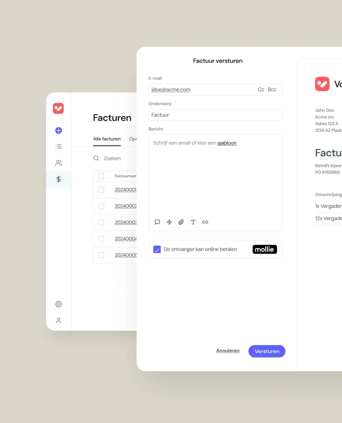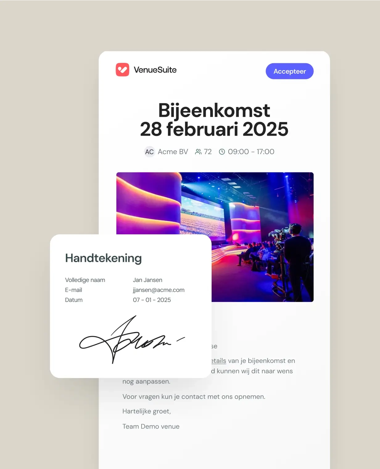 Automatiseer je offertes en facturen en laat event planners eenvoudig online ondertekenen én betalen. Zo versnel je het hele proces, voorkom je onnodig wachten en hou je meer tijd over voor wat echt telt: gastvrijheid.