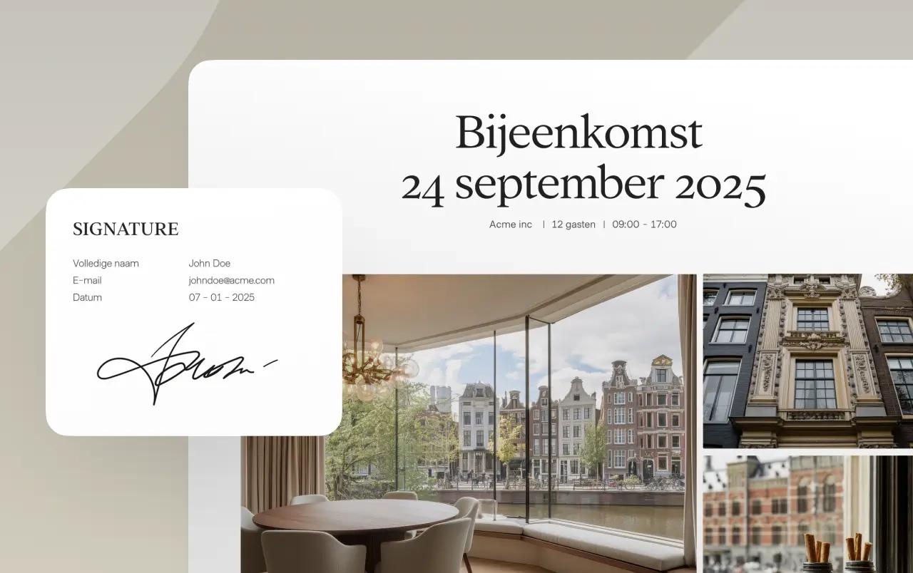 Printen, scannen en losse mailtjes? Hoeft niet meer. Met de ingebouwde e-handtekening tekenen planners gewoon online, op elk device en wanneer het hen uitkomt. Jij krijgt direct een seintje én de bevestigde reservering in je inbox. Sneller voor jou, makkelijker voor planners.