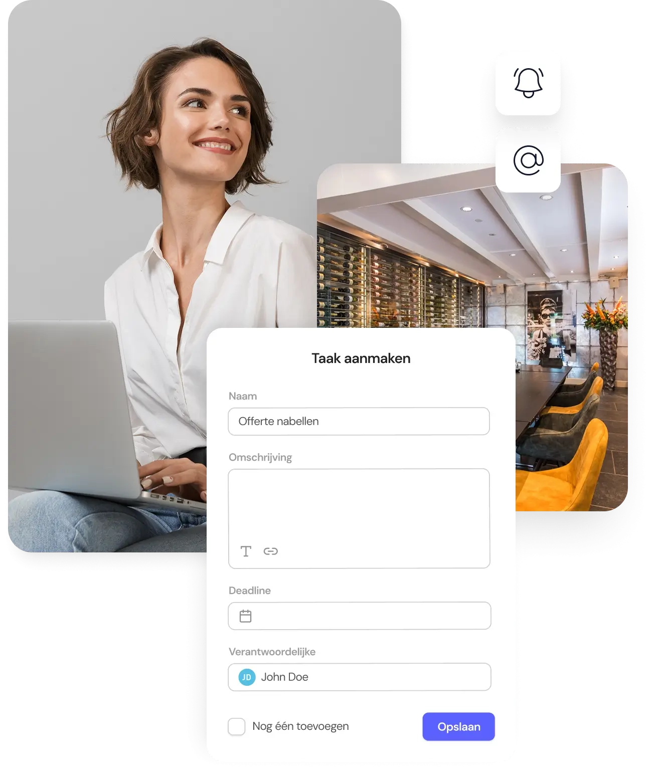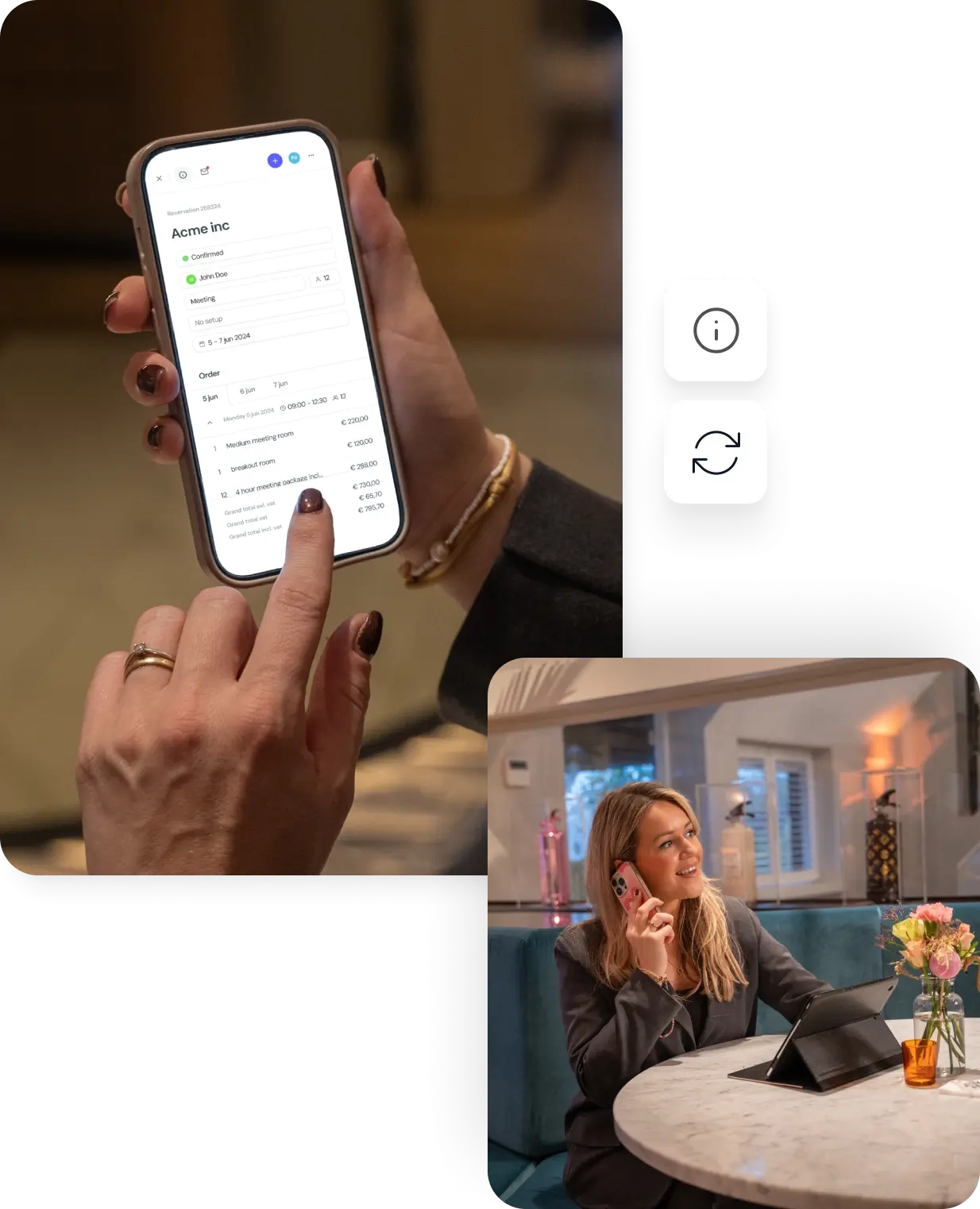 Voor je het weet ben je wéér alles handmatig aan het aanpassen. Offertes, facturen, function sheets, mails: het stapelt zich snel op. Met ons reserveringssysteem hoef je wijzigingen maar één keer door te voeren. Gegevens worden automatisch bijgewerkt en je werkt net zo makkelijk op je telefoon als achter je bureau. Altijd up-to-date, waar je ook werkt..